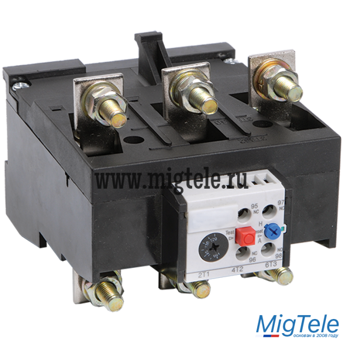 Реле электротепловое серии РТИ является электрическим коммутационным устройством, имеющим собственное потребление энергии. Электротепловое реле серии РТИ предназначено для защиты электродвигателей от перегрузки, асимметрии фаз, затянутого пуска и заклинивания ротора. Устанавливается непосредственно на контакторах серии КМИ. Для защиты от короткого замыкания должны быть предусмотрены предохранители или автоматические выключатели на соответствующее значение номинального тока срабатывания.