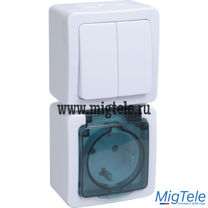БВб-22-32-ГПБд блок "выкл 2кл + розетка 1м с з/к" о/у IP54 ГЕРМЕС PLUS (кл.бел./кр.дым.) |