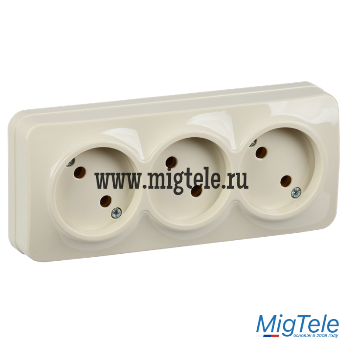 РС23-2-ХК Розет. 3-ая без з/к о/у 10А GLORY кремовый IEK |