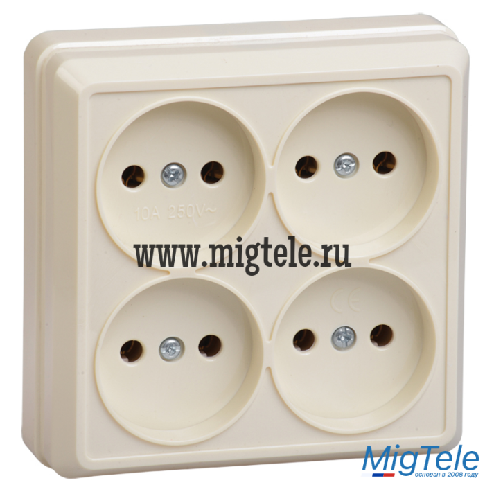 РС24-2-ОК Розетка 4местн. без з/к 10А откр.уст. ОКТАВА (кремовый)