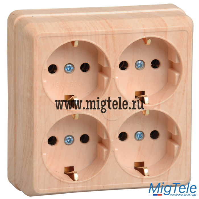 РС24-3-ОС Розетка 4местн. с з/к 16А откр.уст. ОКТАВА (сосна) |