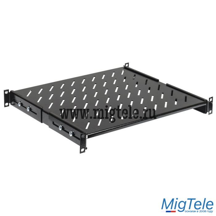 Полки для шкафов и стоек ITK предназначены для размещения на них внутри шкафа оборудования, приборов и аппаратуры, не имеющих кронштейнов и уголков крепления на 19" профили напрямую. К такому оборудованию относятся аккумуляторные батареи, не стоечные ИБП, KVM-консоли, измерительные приборы, медицинское оборудование и прочее. Стационарные полки рассчитаны на тяжелое оборудование с постоянным статичным размещением, крепятся как на фронтальные, так и на задние профили, имеют перфорированную поверхность для обеспечения лучшего охлаждения и отведения теплых воздушных потоков. Ушки, с помощью которых полки крепятся к монтажным профилям, могут регулироваться спереди и сзади в пределах 50 мм, что позволяет увеличить глубину полки на 100 мм и упрощает ее установку внутри шкафа. В зависимости от величины статической нагрузки в ассортименте стационарных полок ITK представлены обычные стационарные и усиленные стационарные полки.