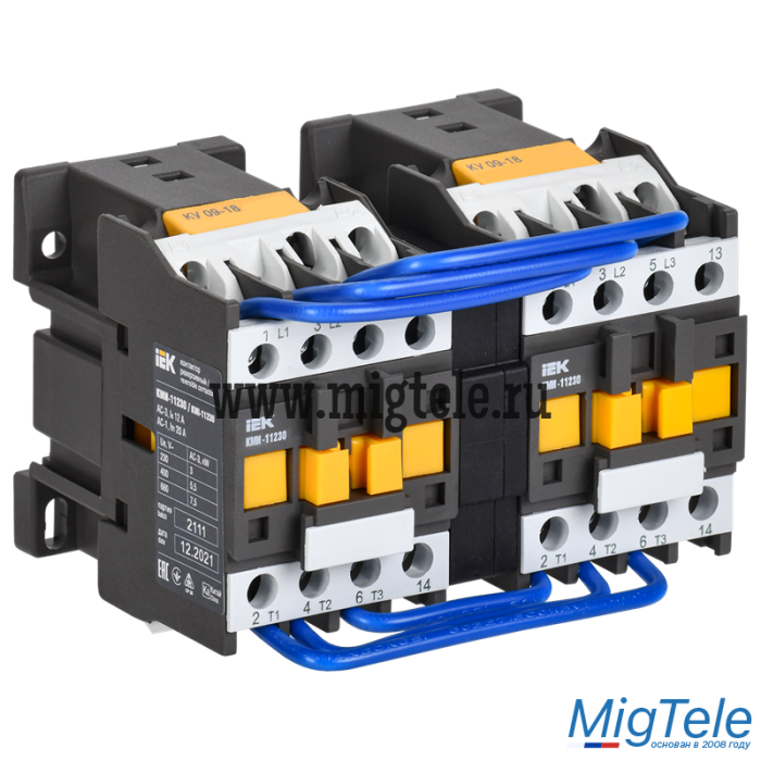 Контакторы КМИ (реверс) IEK используются для пуска, остановки и реверсирования асинхронных электродвигателей, а также для дистанционного управления цепями освещения, нагревательными цепями и различными малоиндуктивными нагрузками (категория применения АС-1). Поставляются с заводскими шинами и механической блокировкой.