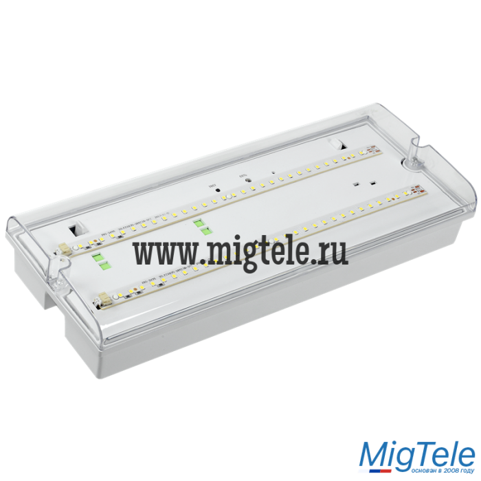 Светильники аварийные серии ДПА 5042 предназначены для обеспечения аварийно-эвакуационного освещения в общественных, административных помещениях с высоким уровнем содержания влаги и пыли (IP65), а также могут использоваться для указания направления эвакуации (пиктограммы в комплект поставки не входят). Аварийная работа светильников осуществляется от встроенного (незаменяемого) аккумулятора. Светильники имеют универсальное подключение (постоянного и непостоянного действия - зависит от схемы). Дальность распознавания 16 м, потребляемая мощность при заряде - 5 Вт. Соответствуют требованиям ГОСТ Р МЭК 60598-2-22 по аварийному освещению.