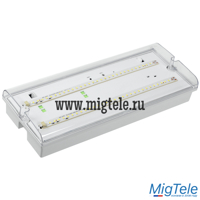 Светильник аварийный ДПА 5044 предназначен для аварийно-эвакуационного освещения в помещениях с высоким уровнем содержания влаги и пыли. Применяются для освещения путей эвакуации, коридоров, проходов, запасных дверей. Совместим с устройством дистанционного тестирования и управления аварийным освещением (УДТУ), а также оснащен кнопкой «Тест» для индивидуального тестирования работоспособности светильника. Имеет универсальное подключение (постоянного и непостоянного действия - зависит от схемы). Дальность распознавания 16 м, потребляемая мощность при заряде - 5 Вт. Соответствует требованиям ГОСТ Р МЭК 60598-2-22 по аварийному освещению.