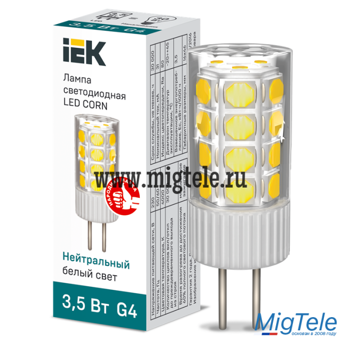 Описание IEK LLE-CORN-4-230-40-G4 Лампа LED CORN капсула 3,5Вт 230В