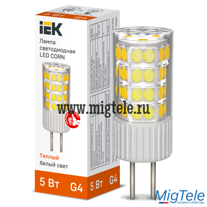 Лампа LED CORN капсула 5Вт 230В 3000К керамика G4 IEK |