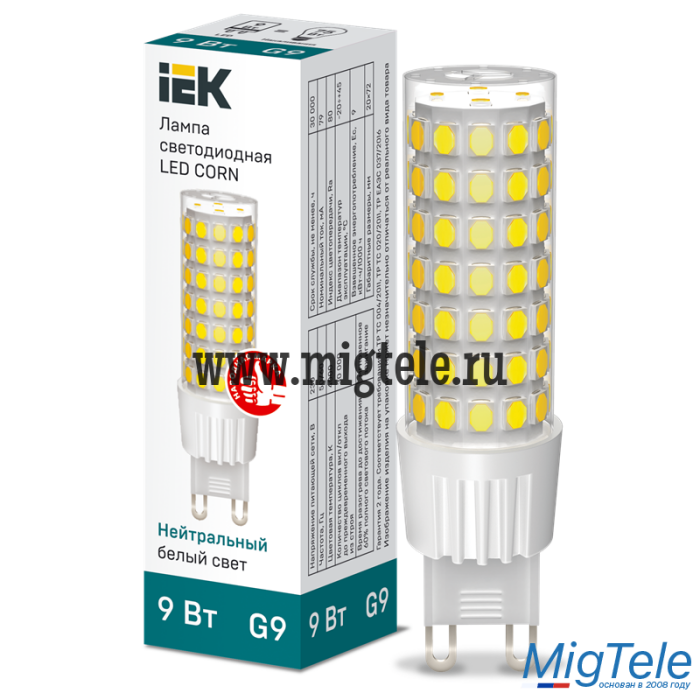 Описание IEK LLE-CORN-9-230-40-G9 Лампа LED CORN капсула 9Вт 230В