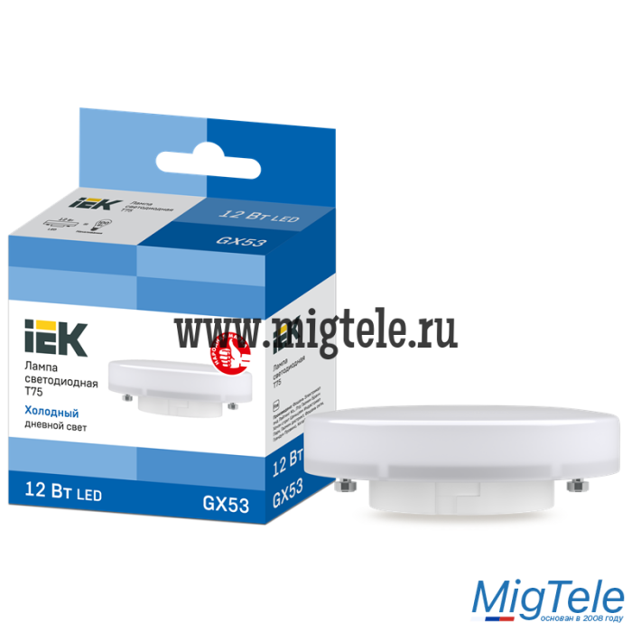 Лампа LED T75 таблетка 12Вт 230В 6500К GX53 IEK |