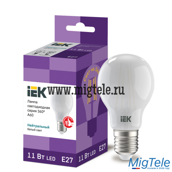 Лампа LED A60 шар матов. 11Вт 230В 4000К E27 серия 360° IEK |