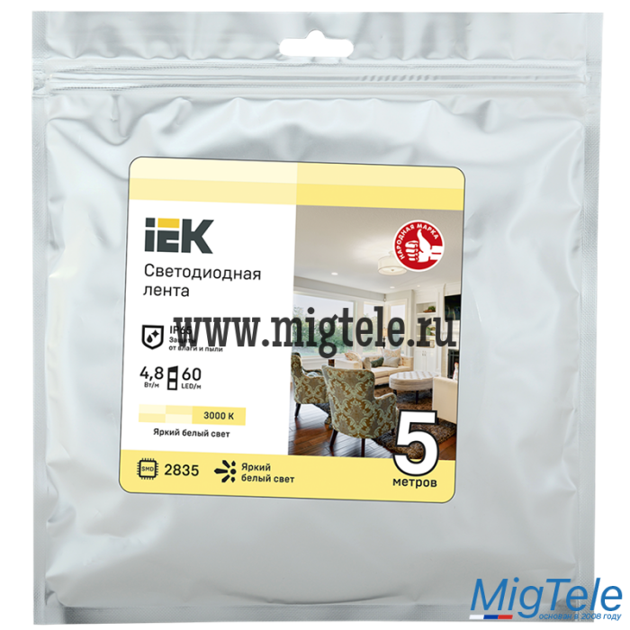 Описание IEK LSR1-1-060-65-3-05 Лента LED 5м LSR-2835WW60-4,8-IP65-12В