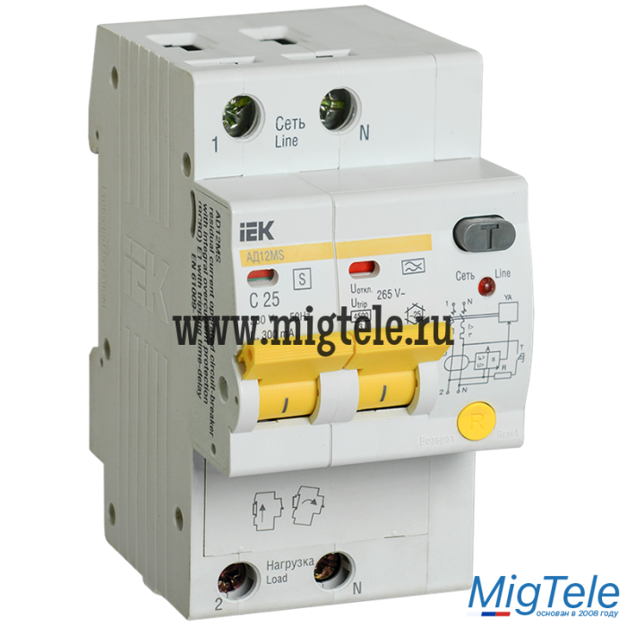 Описание IEK MAD123-2-025-C-300 Диф.автомат АД12MS 2Р 25А 300мА