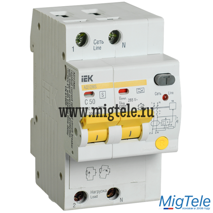 Описание IEK MAD123-2-050-C-300 Диф.автомат АД12MS 2Р 50А