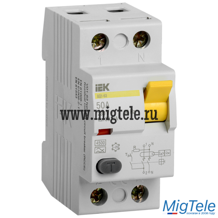 УЗО ВД1-63 2Р 50А 30мА IEK |