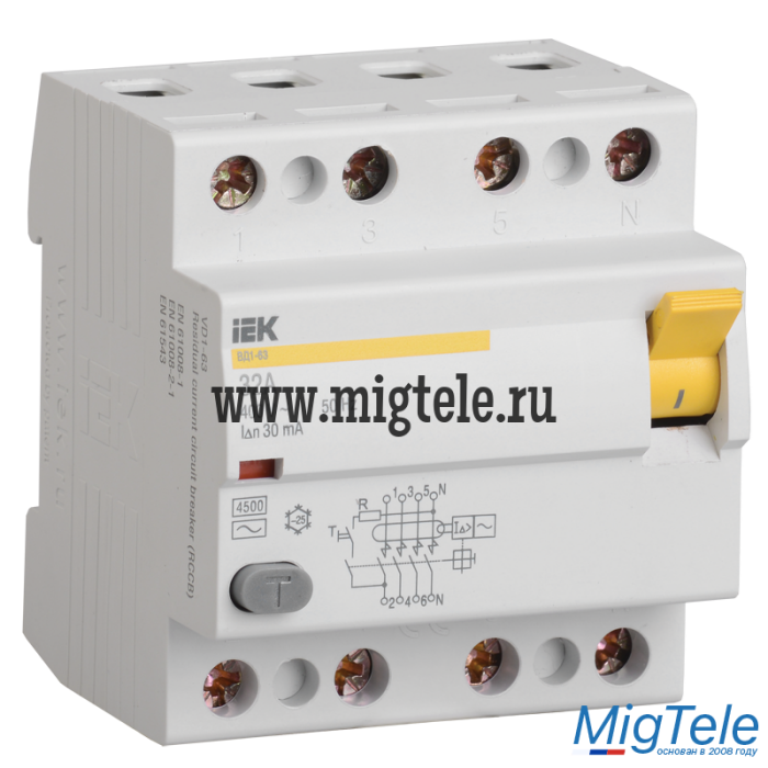 Дифференциальный выключатель ВД 1-63 тип А выпускается в 2-х и 4-х полюсном исполнении на номинальные токи 16А, 25А, 32А, 40А, 50А, 63А и номинальные отключающие дифференциальные токи 10мА, 30мА, 100мА.
