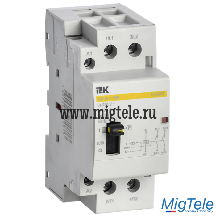 Контакторы модульные типа КМ торговой марки IEK предназначены для применения в сетях переменного тока напряжением до 400 В частоты 50 Гц и служат для коммутации слабоиндуктивных нагрузок с номинальным током до 63 А. Используются для автоматизации и управления различных технологических процессов, в том числе в системах освещения, кондиционирования, вентиляции и т.д.
