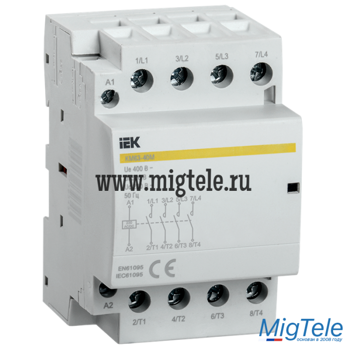 Контакторы модульные типа КМ торговой марки IEK предназначены для применения в сетях переменного тока напряжением до 400 В частоты 50 Гц и служат для коммутации слабоиндуктивных нагрузок с номинальным током до 63 А. Используются для автоматизации и управления различных технологических процессов, в том числе в системах освещения, кондиционирования, вентиляции и т.д.