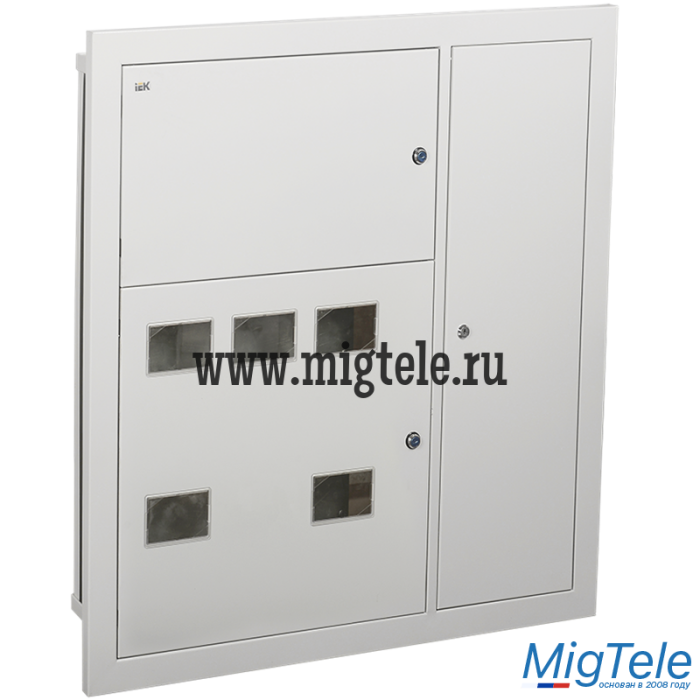 Используется для сборки этажного распределительного щита на 5 квартир, предназначенного для приема и распределения электроэнергии в жилых и общественных зданиях, а также для защиты отходящих линий при перегрузках и коротких замыканиях. Сварной металлический корпус состоит из трех отсеков: вводно-учетного, распределительного, отсека слаботочного оборудования. В вводно-учетном и распределительном отсеках размещены DIN-рейки для крепления счетчиков (по количеству квартир). В распределительном отсеке установлены DIN-рейки для аппаратов групповых линий и рейка для установки шин N и РЕ. Отсек укомплектован оперативной панелью. Отсек слаботочного оборудования снабжен перфорированными профилями для прокладки теле- и радиосетей, телефонных линий, сетей охранной сигнализации, домофонов и т.п. Для обеспечения пожарной безопасности между слаботочным и силовым отсеками расположена разделительная перегородка.