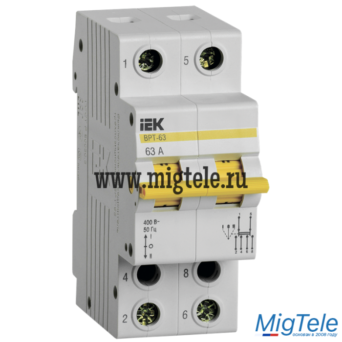 Выключатель-разъединитель трехпозиционный ВРТ-63 2P 63А IEK |