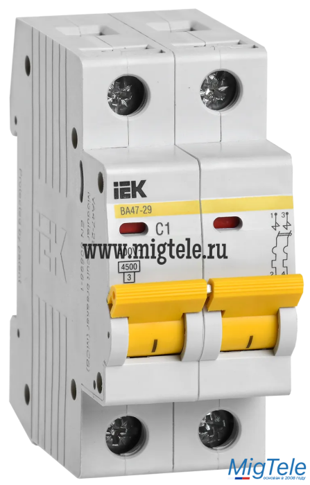 IEK MVA20-2-001-B Авт. выкл. ВА47-29 2Р 1А 4,5кА х-ка В