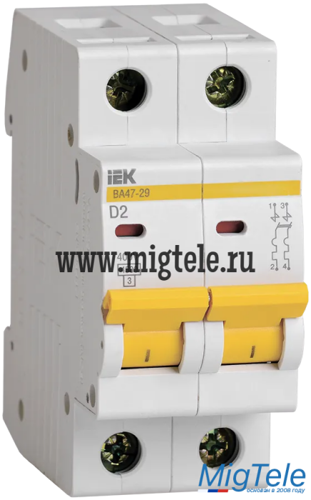 Описание IEK MVA20-2-002-D Авт. выкл. ВА47-29 2Р 2А 4,5кА х-ка D