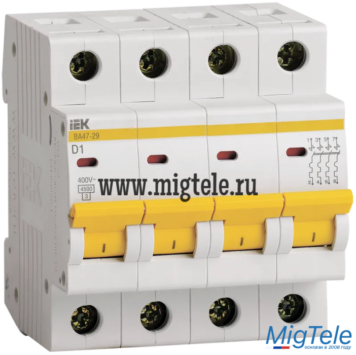 IEK MVA20-4-001-D Авт. выкл. ВА47-29 4Р 1А 4,5кА х-ка D