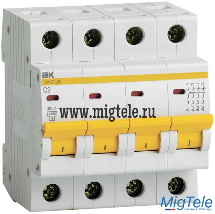 IEK MVA20-4-002-C Авт. выкл. ВА47-29 4Р 2А 4,5кА х-ка С