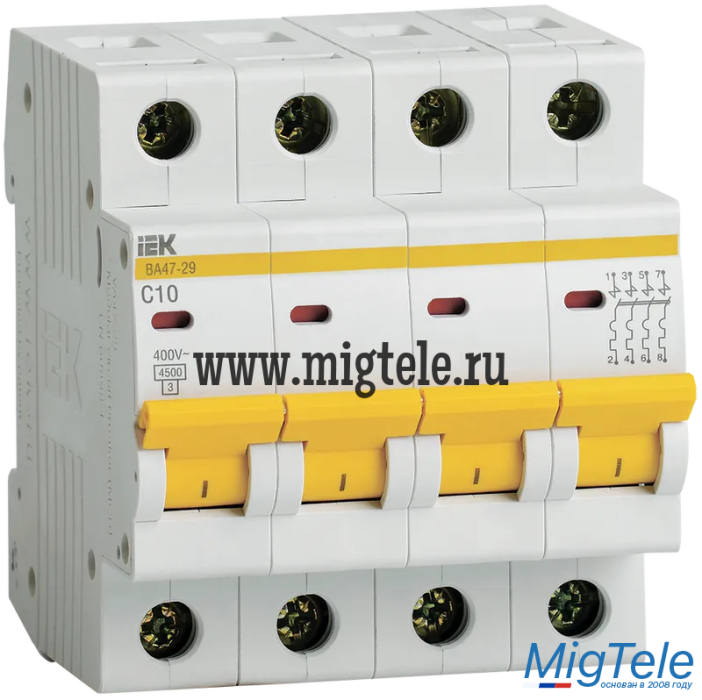 Описание IEK MVA20-4-010-C Авт. выкл. ВА47-29 4Р 10А 4,5кА х-ка С