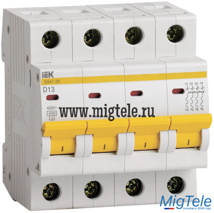 IEK MVA20-4-013-D Авт. выкл. ВА47-29 4Р 13А 4,5кА х-ка D