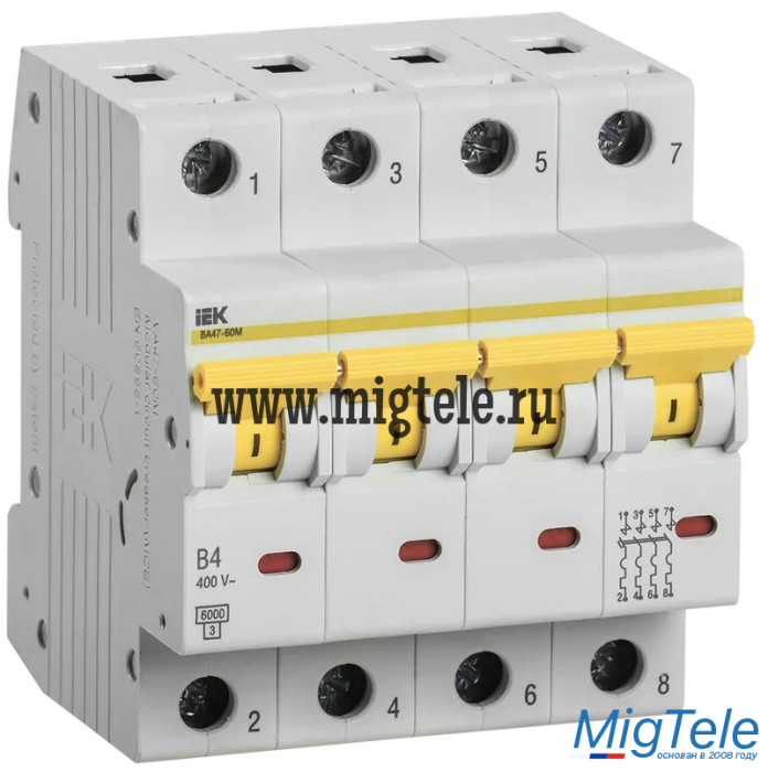 Описание IEK MVA31-4-004-B Выкл. авт. ВА47-60M 4Р 4А 6кА B
