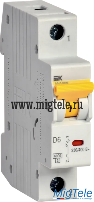 Описание IEK MVA33-1-006-D Выкл. авт. ВА47-60МА без тепл. расцеп. 1P 6А 6кА D