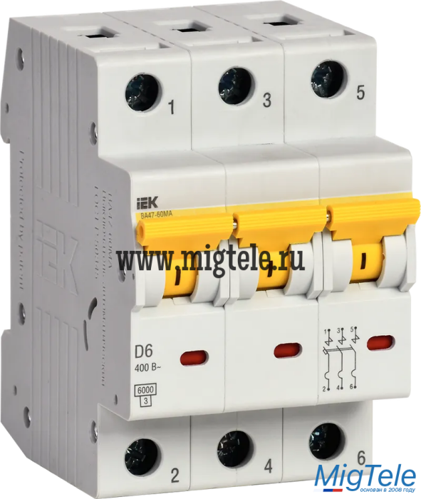Описание IEK MVA33-3-006-D Выкл. авт. ВА47-60МА без тепл. расцеп. 3P 6А 6кА