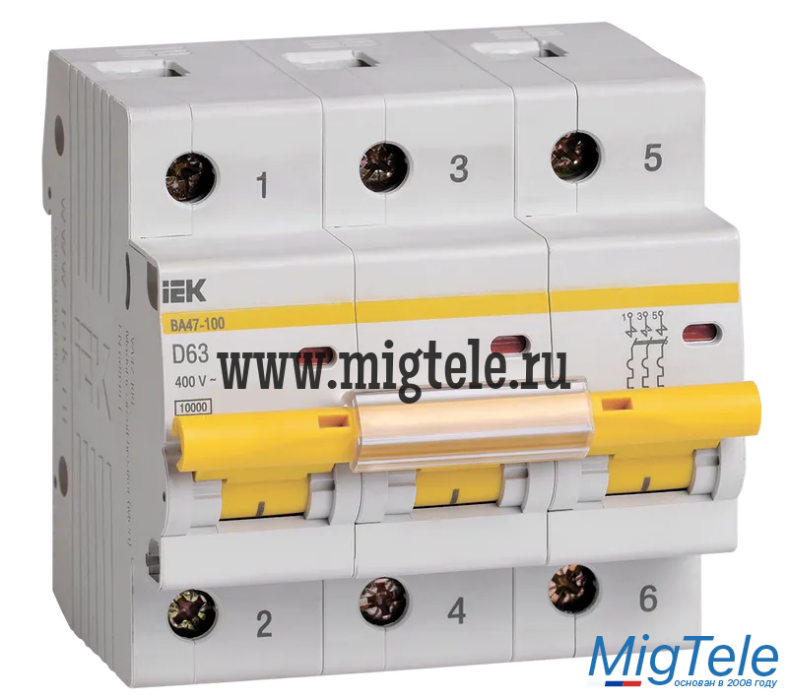 Описание IEK MVA40-3-063-D Авт. выкл. ВА47-100 3Р 63А 10кА