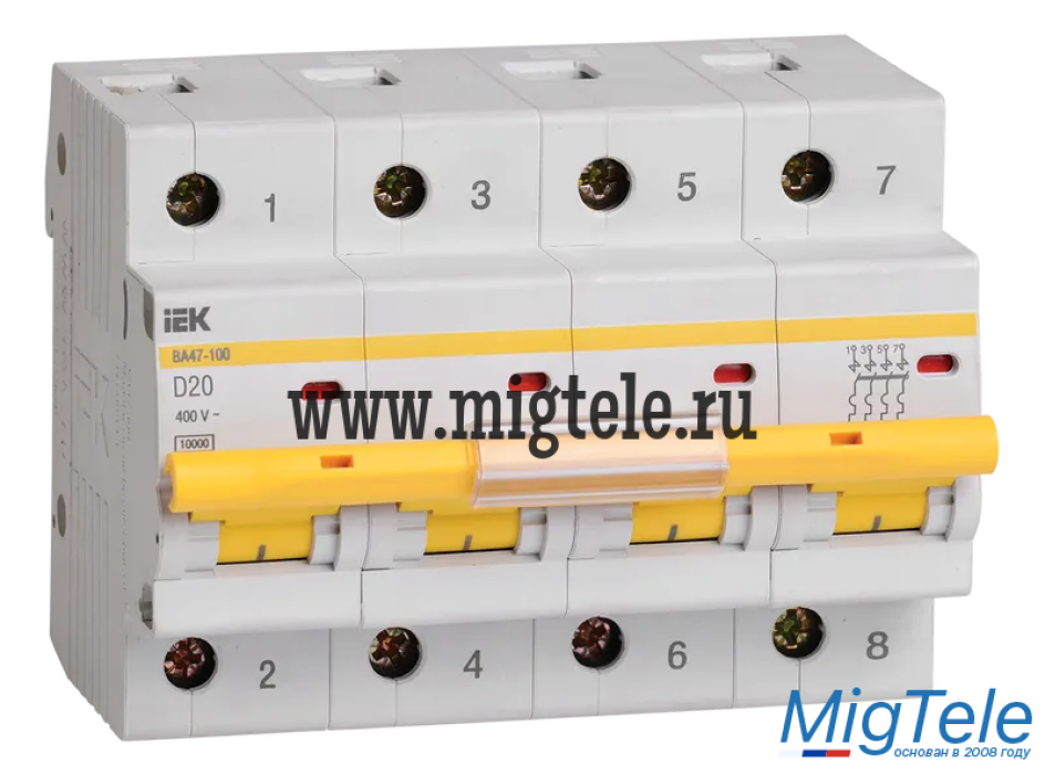 IEK MVA40-4-020-D Авт. выкл. ВА47-100 4Р 20А 10кА х-ка D
