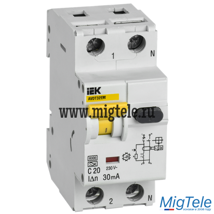 Описание IEK MVD14-1-020-C-030 Выкл. авт. диф. тока АВДТ32EM C20 30мА