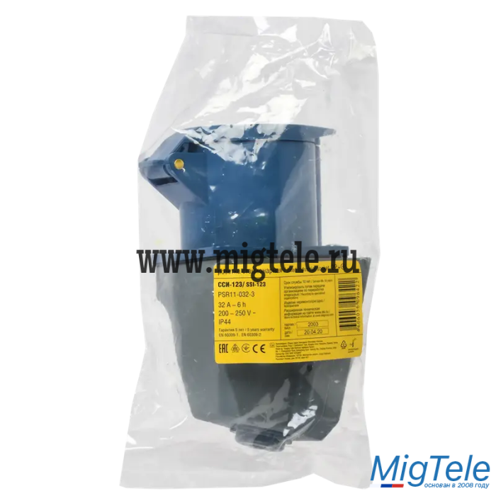 Описание IEK PSR11-032-3 Розетка стац. ССИ-123 32А-6ч 220В 2P+PE