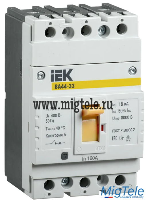 Автоматические выключатели ВА44 IEK предназначены для проведения тока в нормальном режиме и отключения тока при коротких замыканиях, перегрузке, недопустимых снижениях напряжения, а также для оперативных включений и отключений участков электрических цепей. Рассчитаны на эксплуатацию в электроустановках с номинальным рабочим напряжением до 400 В и на номинальные токи от 25 до 630А. Соответствуют требованиям ГОСТ Р 50030.2.