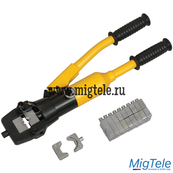Набор сменных пуансонов в комплекте и встроенная револьверная матрица позволяют осуществлять клиновидную опрессовку, которая предпочтительна при работе с моножилой и в тех случаях, когда внутренний диаметр хвостовика наконечника превышает размер кабельной жилы. Голова вращается вокруг своей оси, на 180гр, что обеспечивает дополнительное удобство работы. Клапан для принудительного удерживания и сброса давления упрощает эксплуатацию.