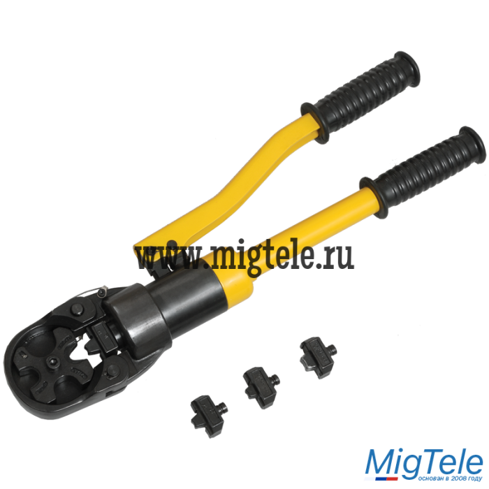Набор сменных пуансонов в комплекте и встроенная револьверная матрица позволяют осуществлять клиновидную опрессовку, которая предпочтительна при работе с моножилой и в тех случаях, когда внутренний диаметр хвостовика наконечника превышает размер кабельной жилы. Голова вращается вокруг своей оси, на 180гр, что обеспечивает дополнительное удобство работы. Клапан для принудительного удерживания и сброса давления упрощает эксплуатацию.