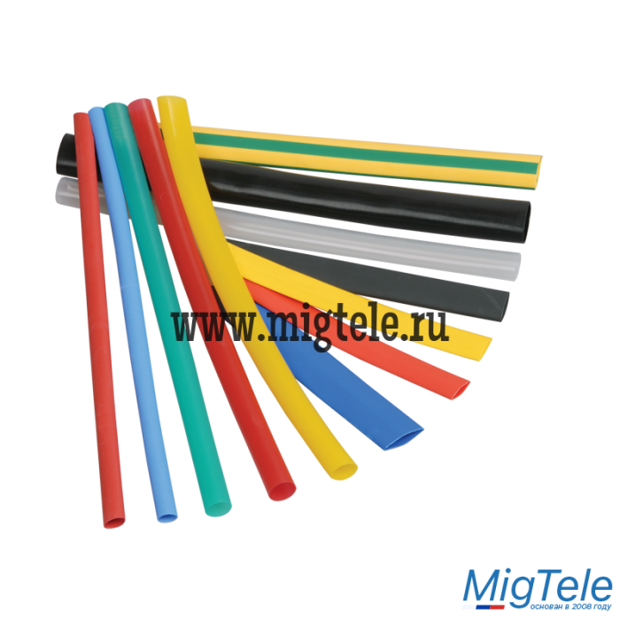 Термоусадочная трубка изготавливается в следующих цветовых исполнениях: белые, желтые, желто-зеленые, зеленые, красные, синие и черные.