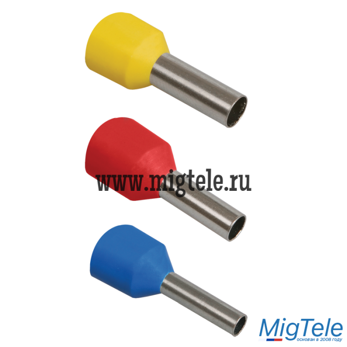 Предназначены для оконцевания проводов и подключения их к контактным зажимам различного электрооборудования (клеммным блокам, автоматическим выключателям, зажимам наборным, розеткам и т.п.). Данный вид наконечников предназначен для оконцевания многопроволочных гибких проводов. Зачищенный конец многопроволочного провода заводится внутрь полой концевой трубки и затем опрессовывается вместе с трубкой при помощи специального инструмента, образуя единую конструкцию, надежно фиксирующую пучок многопроволочной жилы.