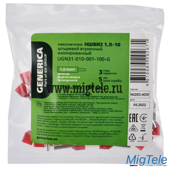 Описание IEK UGN31-010-001-100-G Наконечник НШВИ2 1,0-10