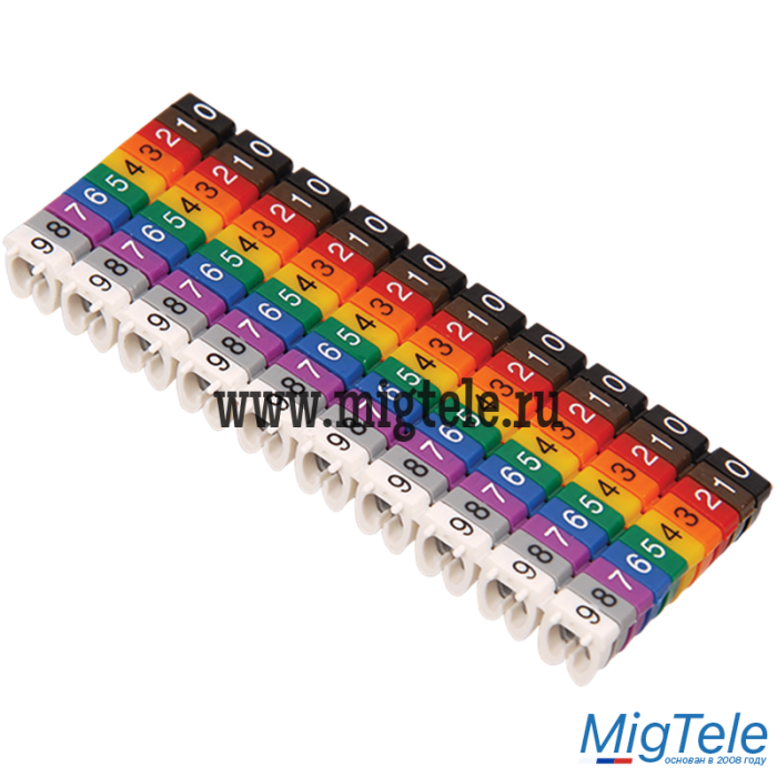 С помощью маркеров МКН можно собирать любые цепочки символов. Каждому символу кабельного маркера соответствует свой цвет согласно правилам, принятым на международном электротехническом рынке.