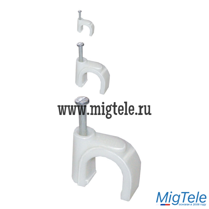 Предназначены для быстрого и надежного крепления круглых и плоских кабелей. Возможно крепление к дереву, прессованному картону и швам кирпичной кладки, к штукатурке, бетону, кирпичу. Изготовлены из гибкого негорючего ударопрочного полипропилена, гвоздь - закаленная оцинкованная сталь.
