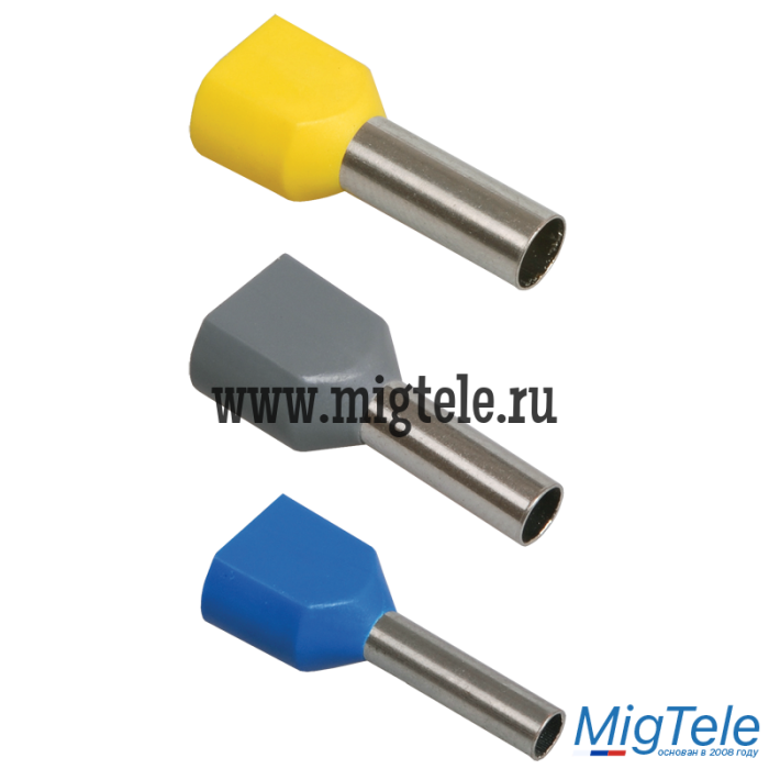 Выполняют те же функции, что и наконечники-гильзы медные луженые (Е-гильзы), но дают возможность оконцевания не одного, а двух проводов.