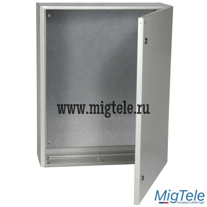 Сварной металлический корпус со съемной монтажной панелью. Дверца корпуса запирается на замок. Ключ замка имеет единый секрет.