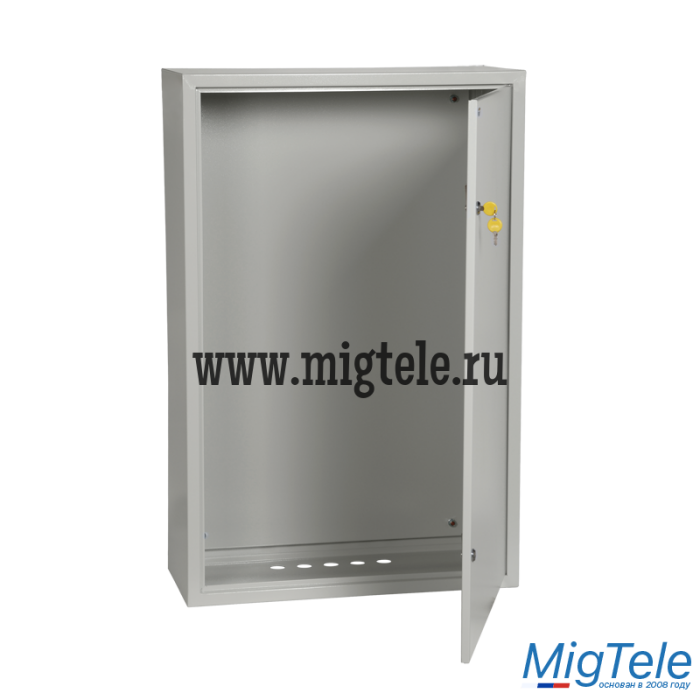 Сварной металлический корпус со съемной монтажной панелью. Дверца корпуса запирается на замок. Ключ замка имеет единый секрет.