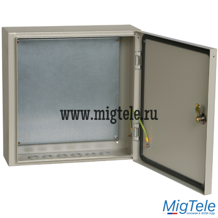 Сварной металлический корпус со съемной монтажной панелью. Дверца корпуса запирается на замок. Ключ замка имеет единый секрет.