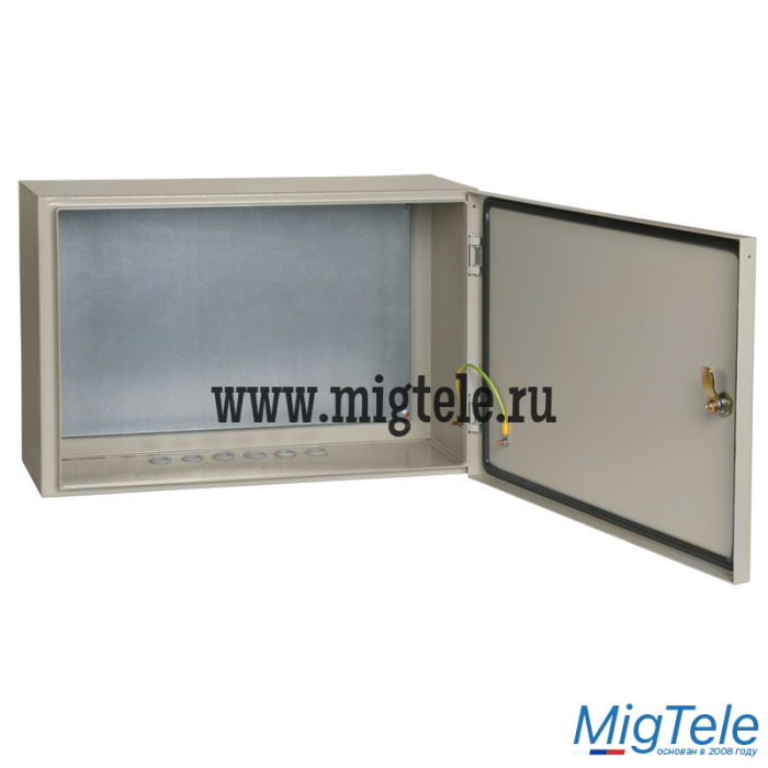Сварной металлический корпус со съемной монтажной панелью. Дверца корпуса запирается на замок. Ключ замка имеет единый секрет.