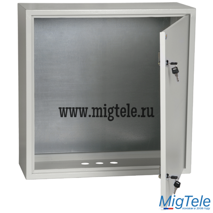 Сварной металлический корпус со съемной монтажной панелью. Дверца корпуса запирается на замок. Ключ замка имеет единый секрет.